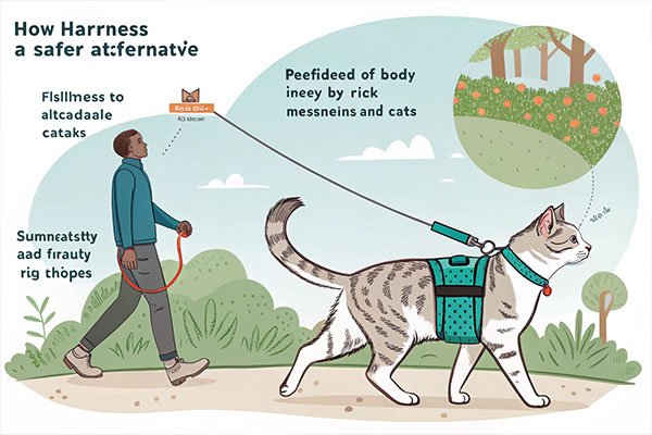 Harnesses provide an alternative way to control and protect your cat. Their fit is even more critical than collars.