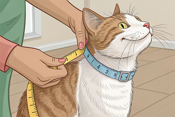 Use a cloth tape measure, allowing room for two fingers between the collar and your cat’s neck. Check and adjust if needed, especially in growing cats.